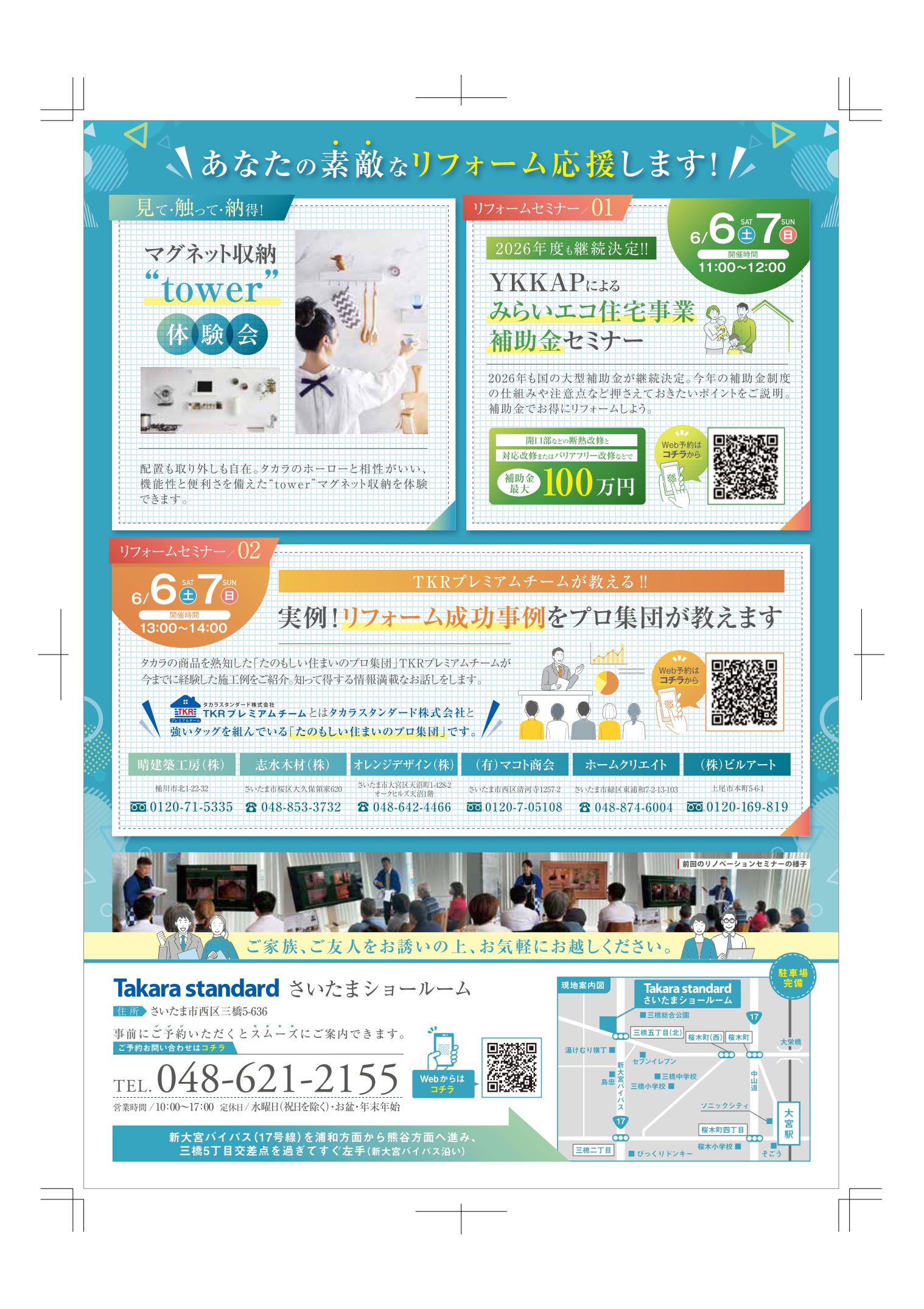 ■【会場】タカラスタンダード さいたまショールーム(埼玉県さいたま市西区三橋5-636)