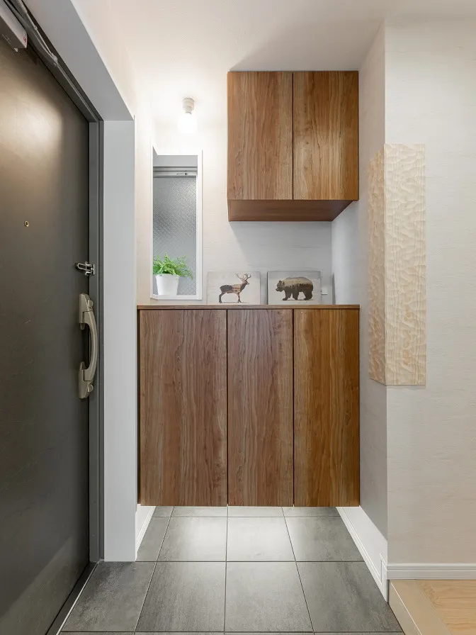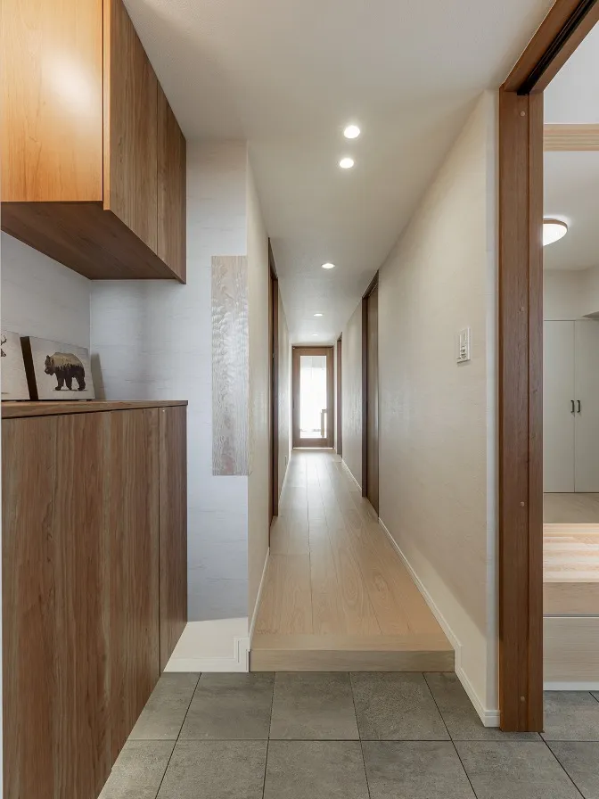 玄関から見える景色です。左に玄関収納、右は土間収納へと続きます