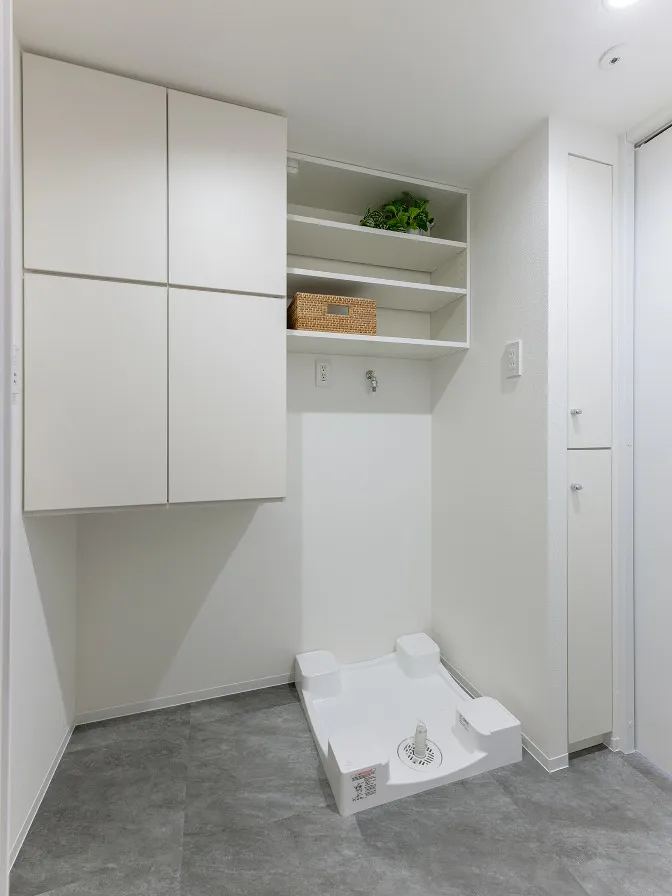 かつて洗面台があった場所は、洗濯機置き場と大きな収納吊戸になりました