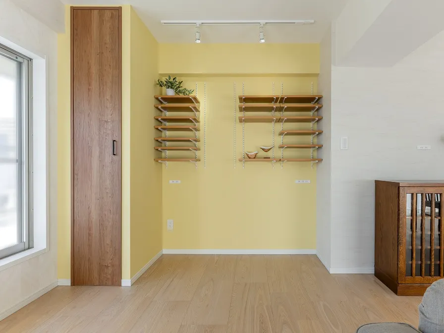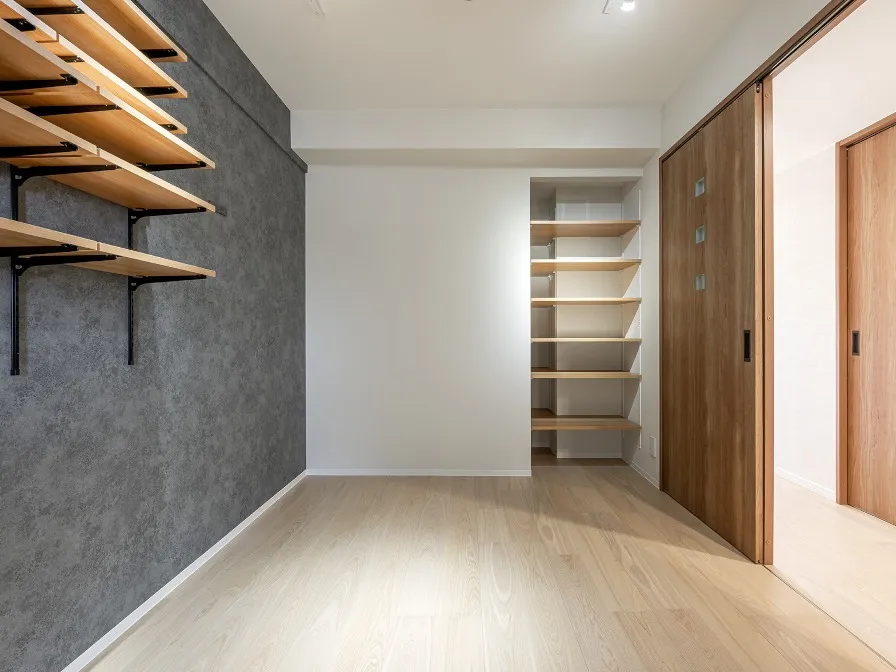 構造上できてしまう間取上のスペースも、可動棚を上手に組み合わせて収納スペースに