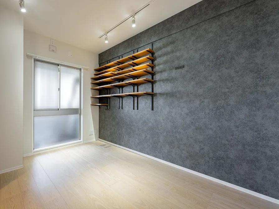洋室1はシックな印象。照明はライティングレールのみでスポットライトや、ペンダントライトの明かりを楽しむ事ができます