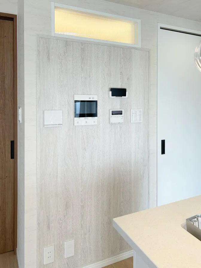 インターホンやリモコンを取り付けている壁面は、パナソニック「カスタムパーツ マグネットボード」。磁石でくっつく壁になっています
